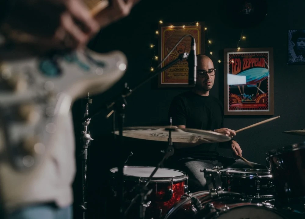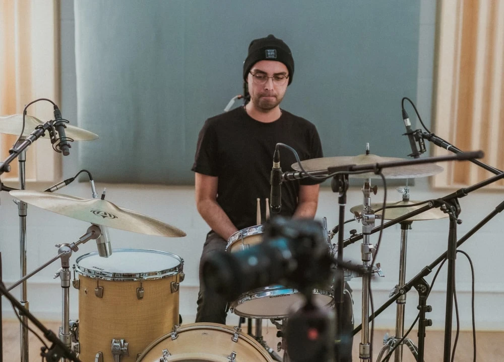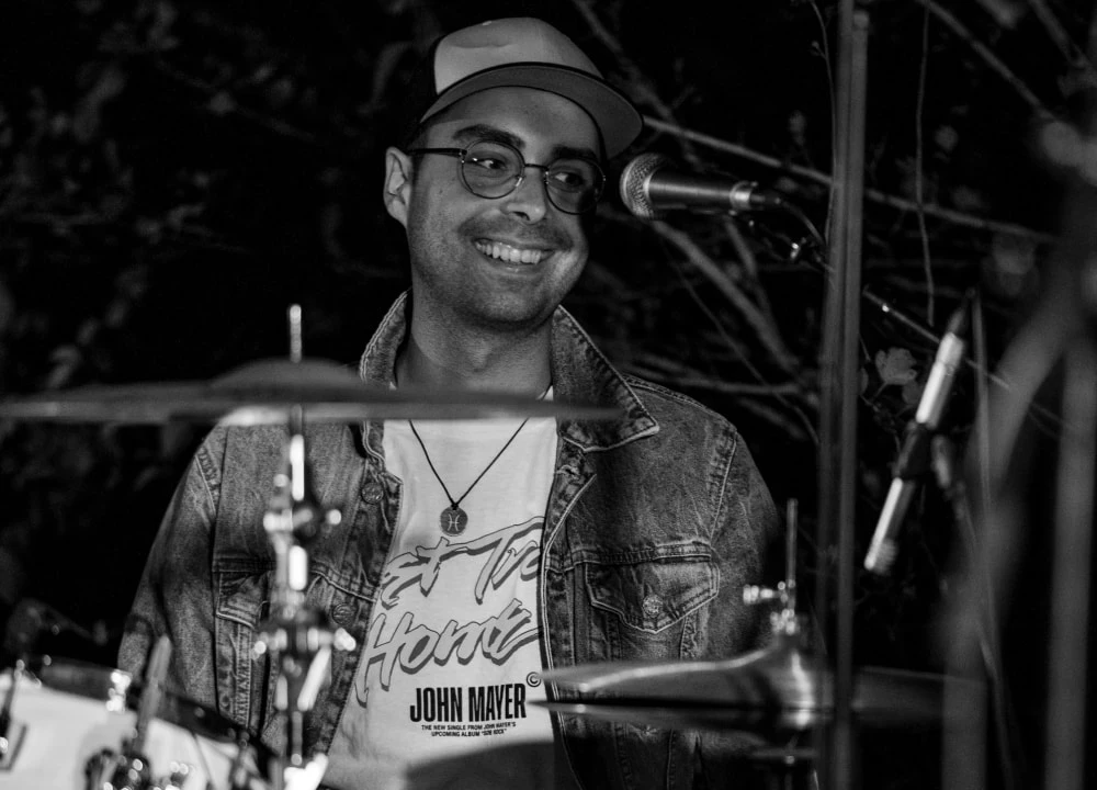 Der Techniker. Ob Performance, Equipment oder natürlich bei seinem Schlagzeugspiel: Linus kümmert sich darum, dass die Details sitzen. Groß geworden mit härterer Musik hat er das Double Bass-Pedal abgebaut und genießt es jetzt, die groovige Basis für diverse Gitarrensoli und Ohrwurm-Refrains zu legen. Könnte er den Platz mit einem Drummer tauschen, wäre es Steve Jordan (Rolling Stones, Blues Brothers, John Mayer).