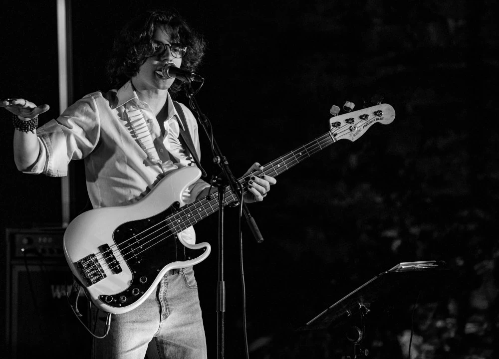 Der Showman. Als jüngster Musiker der Band hat man es nicht immer leicht! Zwischen groovigem Bass und humorvollen Moderationen ist Clemens die Stimme der Band. Glücklicherweise verbirgt sich hinter seinem süßen Cola-Gesicht eine überraschend rauchige Whiskey-Stimme. Sie klingt, als hätte sie mehr Zigaretten geraucht und Drinks geschluckt als jeder Western-Saloon. Mit einer ordentlichen Portion Spaß und Leichtigkeit ist er eine Bereicherung für den Proberaum und der Liebling jeder Bühne.